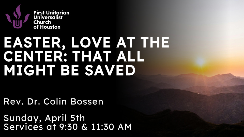 as preached at the First Unitarian Universalist Church of Houston, April 5, 2026